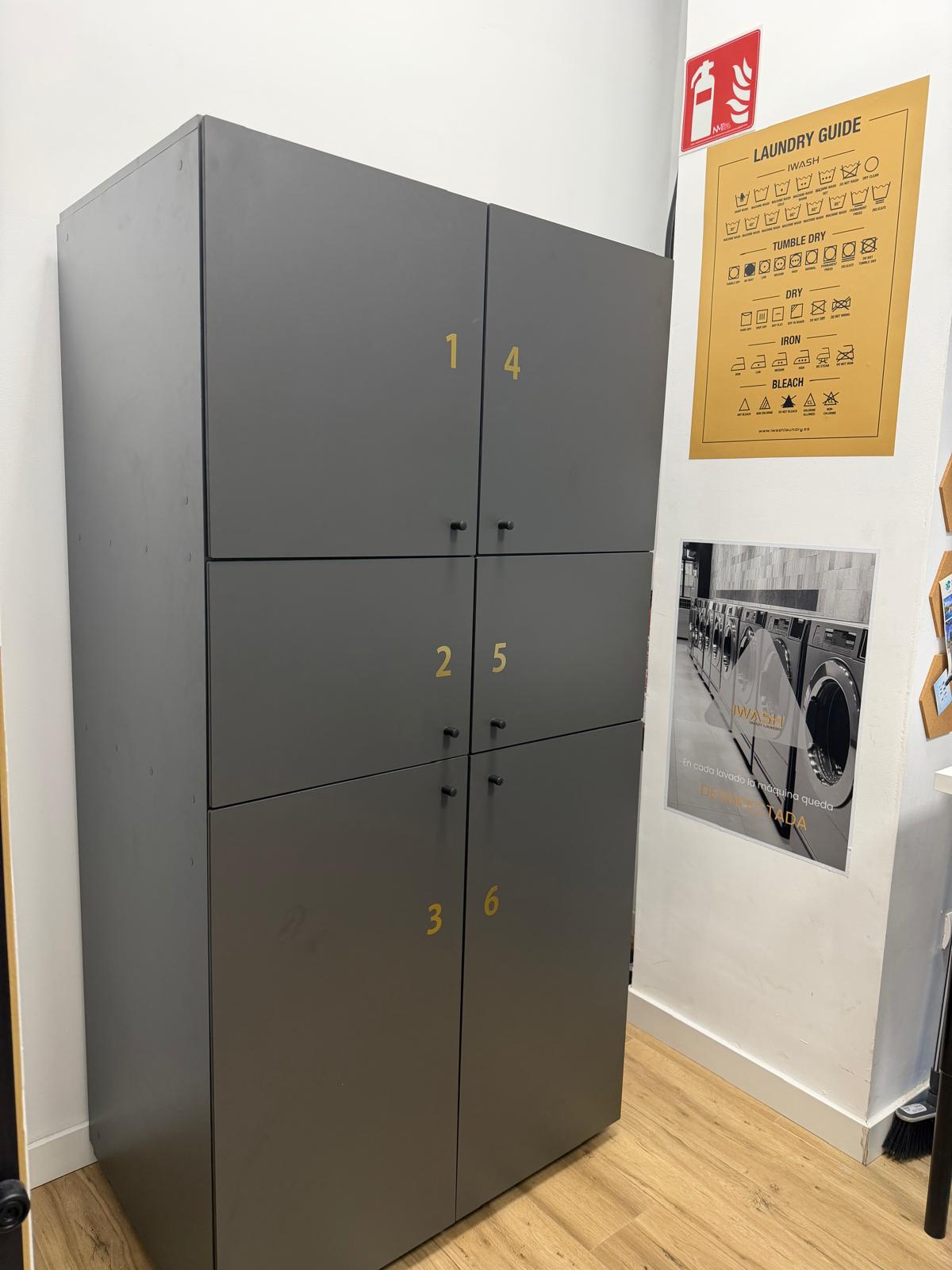 Disponemos de 6 módulos de taquillas seguras ubicadas dentro de nuestra lavandería autoservicio.